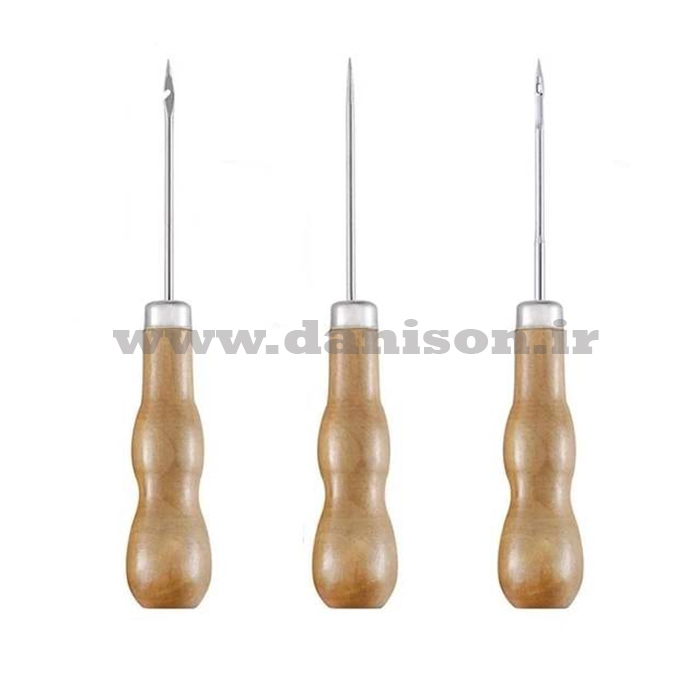 درفش دسته چوبی سه‌تایی | پک کامل حرفه‌ای برای چرم‌دوزی و کفاشی