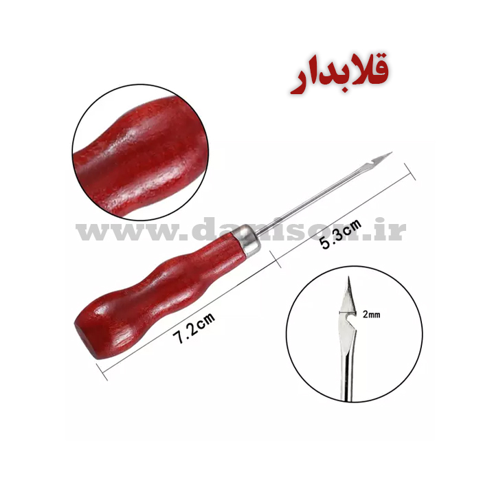 درفش دسته چوبی قلابدار وسیله‌ای پر استفاده در چرم دوزی یا انواع صنایع دستی است که در حین ایجاد شکاف در چرم یا هر سطح دیگری قابلیت عبور دادن نخ یا ریسمان مورد نظر را نیز دارد. دسته‌ی چوبی این درفش بسیار مقاوم و خوش دست است و کار را برای شما راحت‎‌تر و ساده‌تر می‌کند. اگر شما هم به دنبال یک درفش قلابدار هستید که برای سال‌ها خیال شما را از بابت داشتن این ابزار راحت کند می‌توانید با خیالی آسوده این محصول را به سبد خرید خود اضافه کنید.
