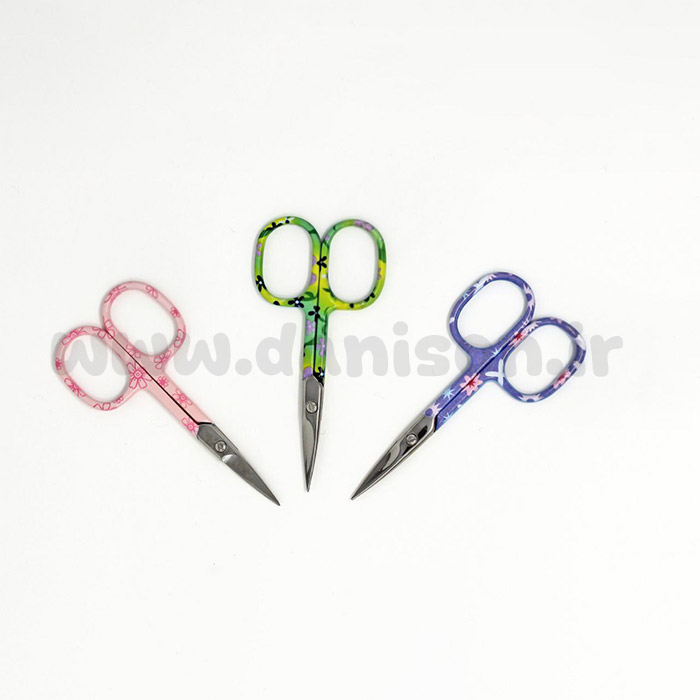 دسته این قیچی با طرح گل تزئین شده است که ظاهر محصول را زیبا و جذاب میکند و حس لوکس بودن و ظرافت را منتقل میکند.