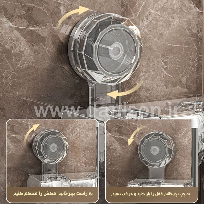 این پایه تنها با چرخاندن بخش ساکشن روی دیوار نصب میشود و هیچ رد یا خرابی روی سطح باقی نمیگذارد.