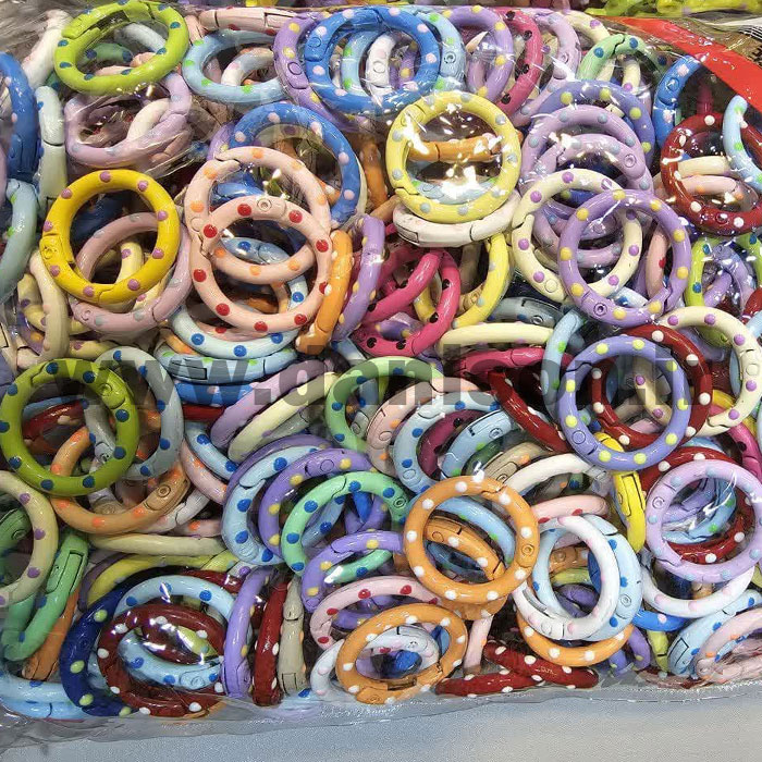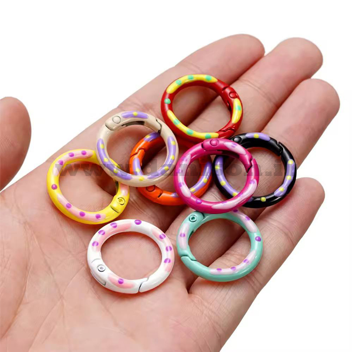 کارابین فانتزی حلقهای یک نوع حلقه اتصال کوچک و رنگارنگ است که با طراحی جذاب و دایرهای، هم برای استفاده کاربردی و هم تزیینی به کار میرود. این کارابینها برخلاف مدلهای کوهنوردی، سبک، فانتزی و مناسب مصارف روزمره، دکوری و هنری هستند.