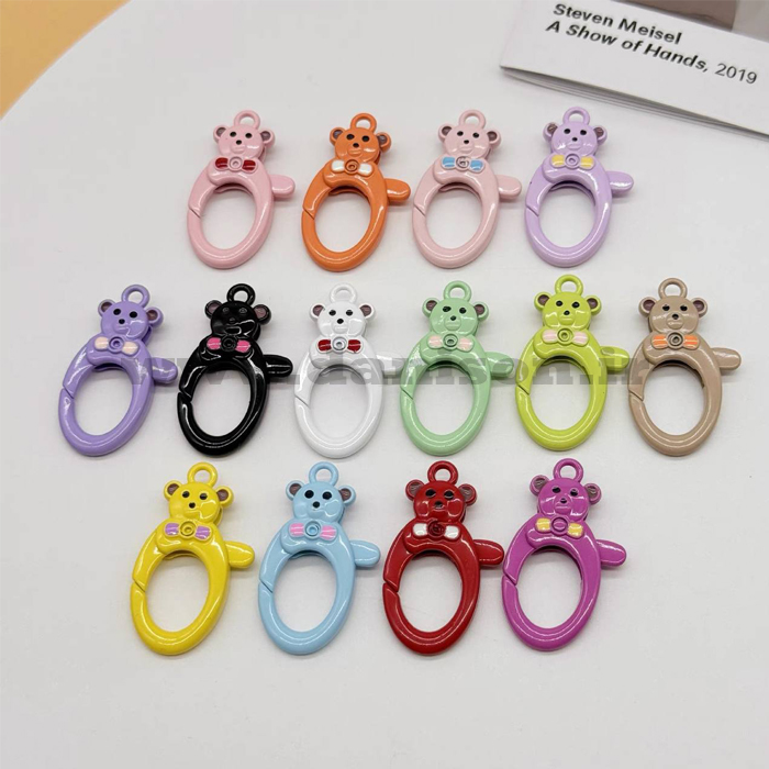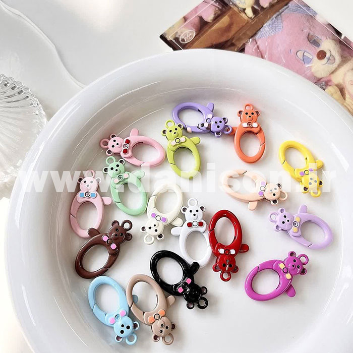 کارابینهای موجود در تصویر، کارابینهایی با طراحی فانتزی به شکل خرس هستند که علاوه بر کارایی، جنبهی تزئینی نیز دارند. این نوع کارابینها معمولاً برای استفاده در لوازم کودک، کیفهای مدرسه، جاکلیدیها و انواع اکسسوریهای دخترانه و نوجوانانه طراحی میشوند. ظاهر جذاب و رنگهای متنوع آنها باعث شده تا بهخصوص در میان کودکان و نوجوانان محبوبیت بالایی پیدا کنند.