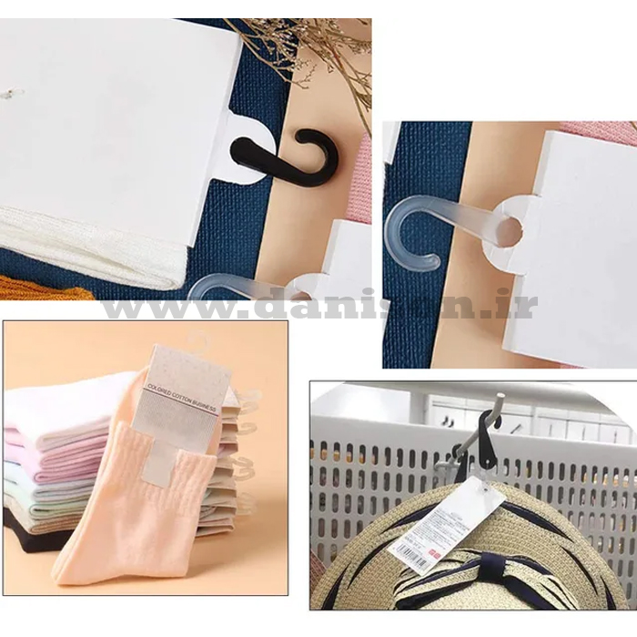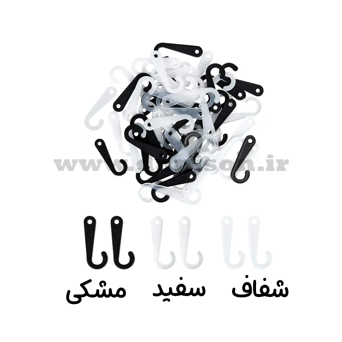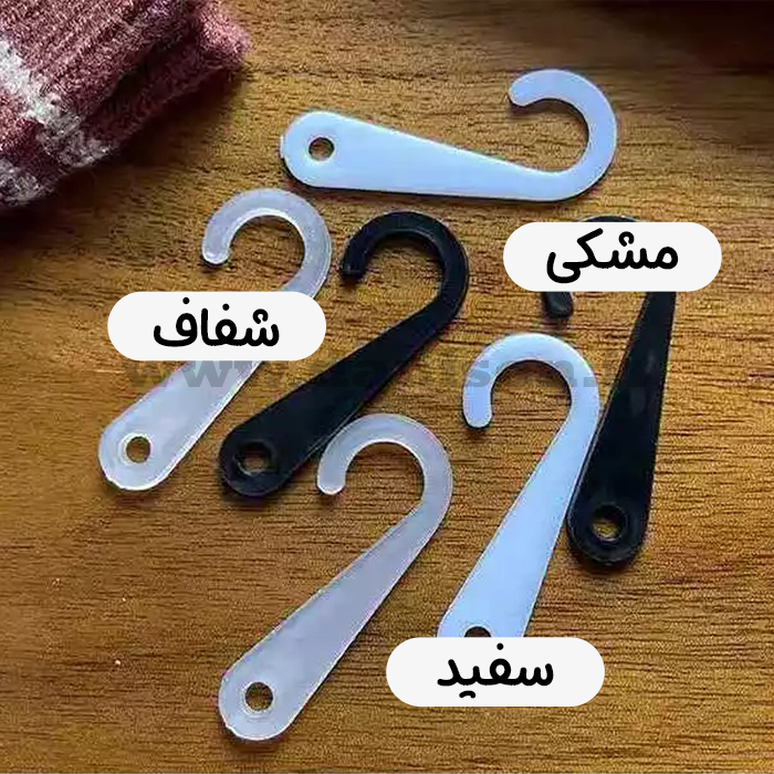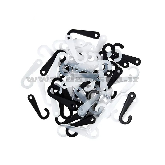 گیره جورابی عصایی (یا همان گیره جورابی علامت سؤال ) در دو رنگ شفاف و مشکی بر حسب کیلوگرم در فروشگاه دنیسون با بهترین قیمت عرضه میشود.